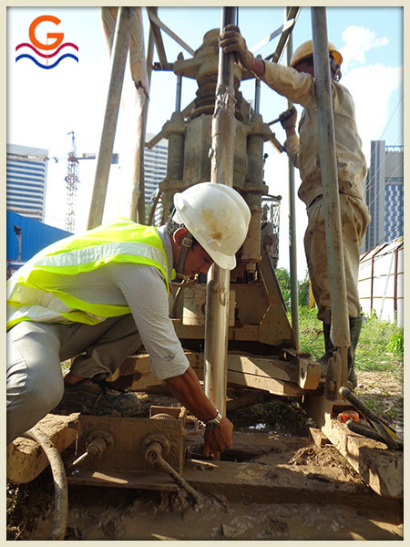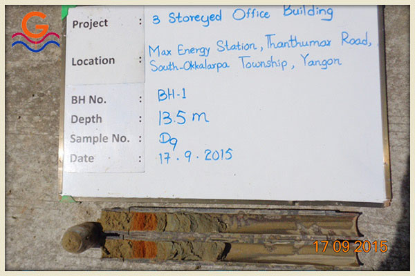 In general, undisturbed sample taken at every 3 m interval for each borehole, or at depth indicated by Engineering Geologist according to the site conditions. Shelby tube thin-wall sampler is having a sharp cutting edge for Undisturbed Sampling of soils. The bottom of the borehole was cleaned, before a sample was taken and then “Shelby” thin-wall sample tube is driven by hydraulic push. Disturbed sample shall be obtained from split-spoon sampler by standard penetration test. Soil classification is generally carried out as per this recommendations of “BS 5930:1999 ( Site Investigation ) Code of Practice”. After collection the samples were sealed with wax immediately cut both ends and labeled properly before sending to the Laboratory for testing.